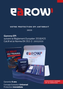 Conditionnement Hygiène et entretien Vos Protections sont livrées avec : cordon amovible étui de rangement pince-vêtement mode d’emploi étiquette pour la garantie et la traçabilité guide ludique de sensibilisation au bruit La sensibilisation au bruit Le confort des protections auditives L’hygiène à tenir pour l’entretien des protections La mise en place et le retrait des protections La formation est accompagnée d’une vidéo et d’un ensemble de supports. Un bon entretien de vos protections garantie leur efficacité. LOOK® Évaluation Look est un outil permettant à l’utilisateur une évaluation de la performance de sa protection auditive. Très simple d’utilisation, il est piloté par l’utilisateur et permet d’établir le niveau d’atténuation ressenti par le porteur d’EPI. Rapide, ludique, interactif et impartial car entièrement piloté par l’utilisateur. Sensibilisation LE BRUIT AU TRAVAIL Votre livret d’information et de sensibilisation ACADAMEAR Borne Look UN POINT SUR EAROW...